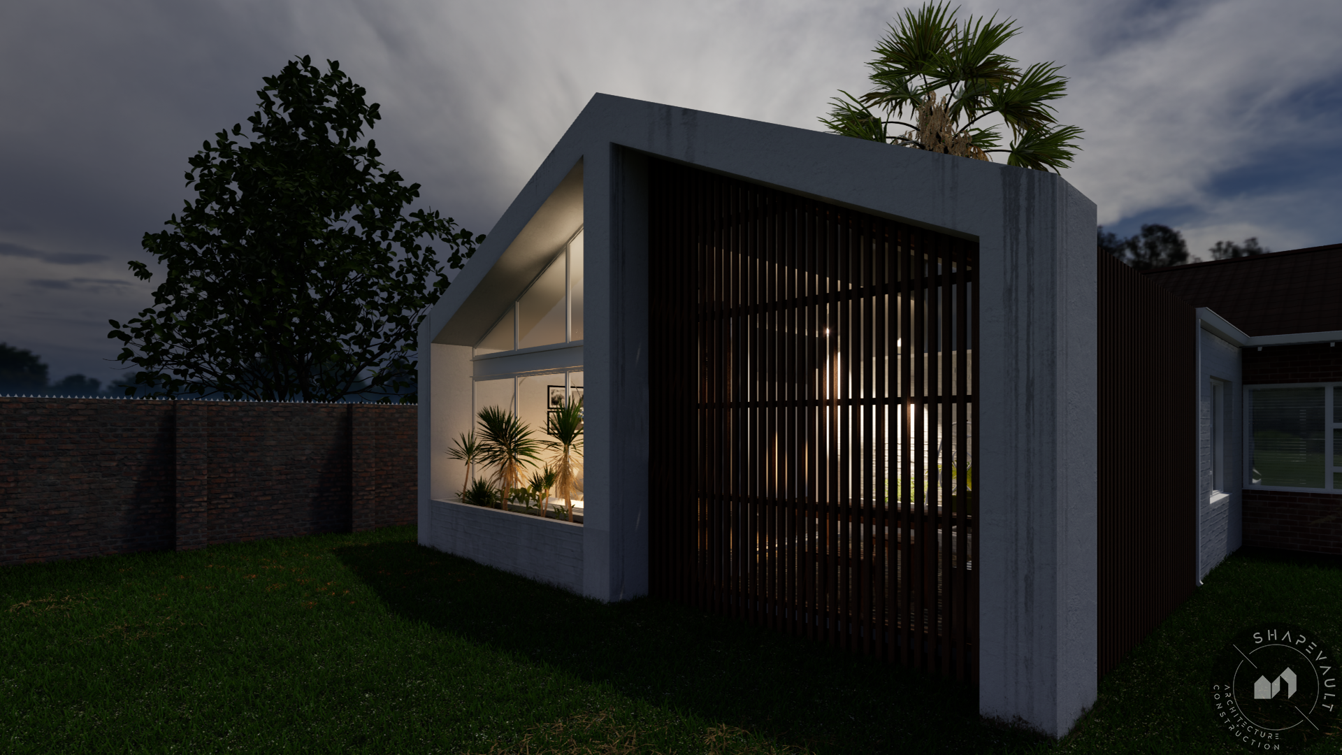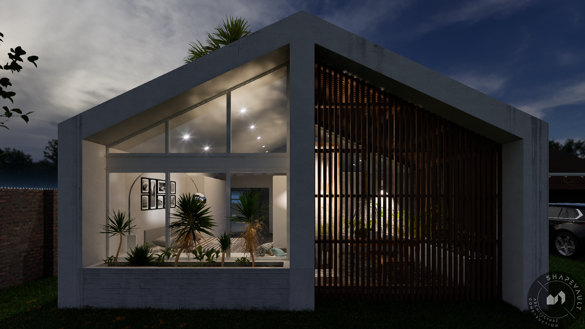 This suburban house’ external skin comprises of a great use of face-brick on its external skin. To create a focal point of the new addition we made use of a large symmetrical mass of in situ concrete trailed by bag-washed painted face-brick contrasting the old vs new. The new bedroom addition includes a linked private covered patio, enabling cool breezes to flow to the bedroom on warmer days.